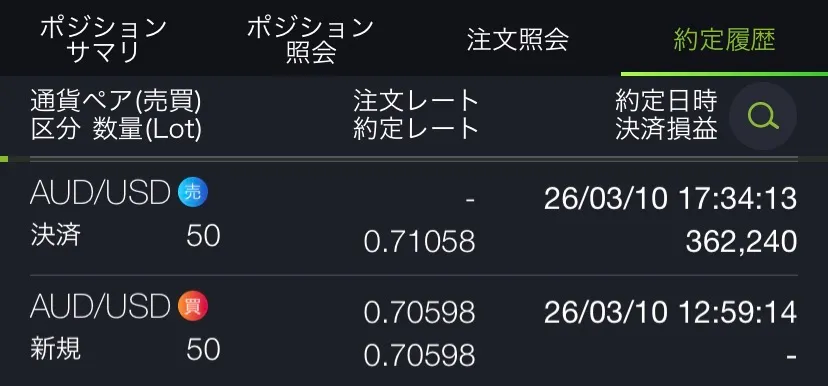 ◆ 2026年3月10日 火曜日【AUD/USD】【5分足チャート】