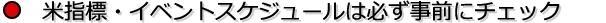 米指標・イベントスケジュールは必ず事前にチェックしておいて下さい。チャンスが巡ってくる時間帯を把握しておくことで効率よく利益を積み上げていけるかと思います。