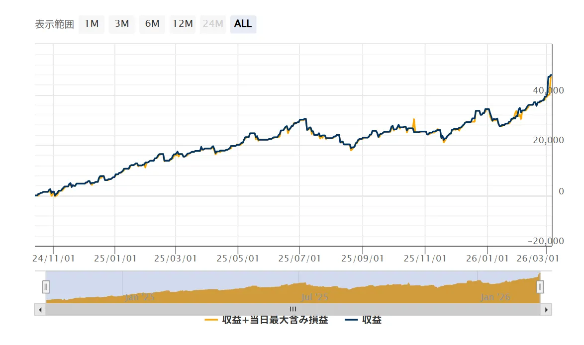 資金曲線はATH(過去最高益)を更新し続けています。