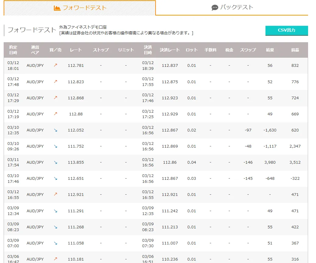 4ポジションでスワップ差し引いてプラスで終えております。※AUD/JPYの場合