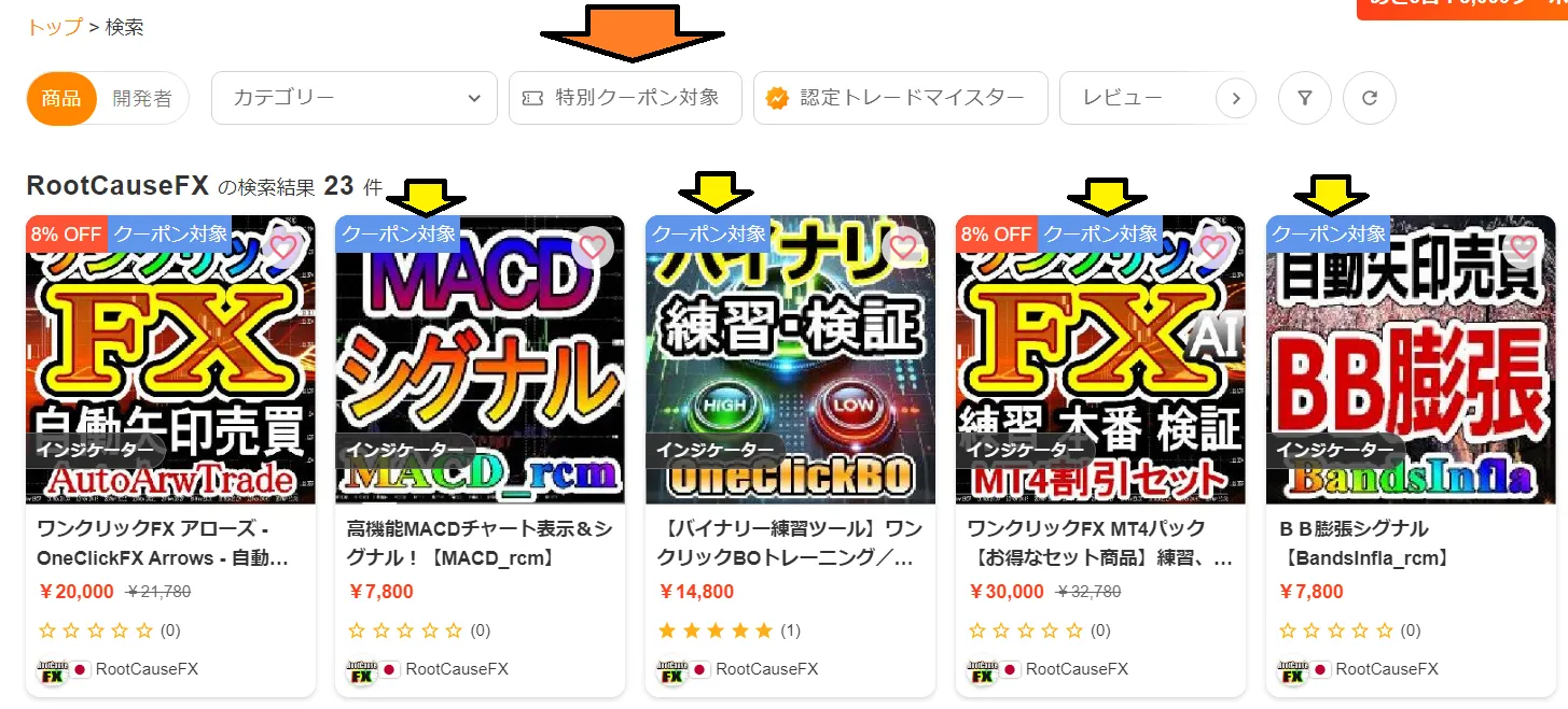 - 一覧の「クーポン対象」表示(バッジ)を目印にする
