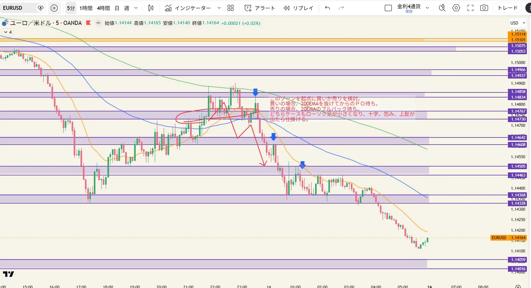 売りシナリオの肝となるゾーンが赤い〇のところですが、ここを基準にシナリオを立てています。