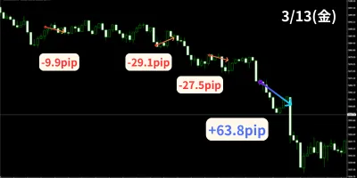 3月13日の「30秒足GOLDオートマチックFX」のトレード結果