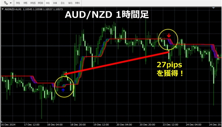 これにより、転換点や有利な押し目・戻り売りが視覚的に浮き上がり、