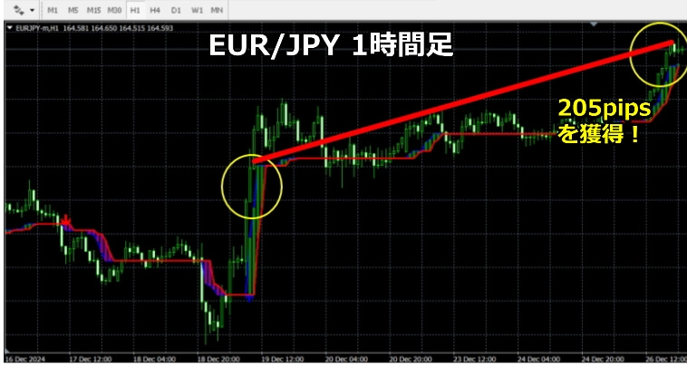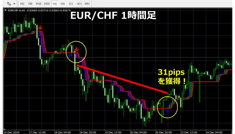 最も大きな特徴は、エントリーの候補となるポイントをチャート上の矢印で直接表示することです。