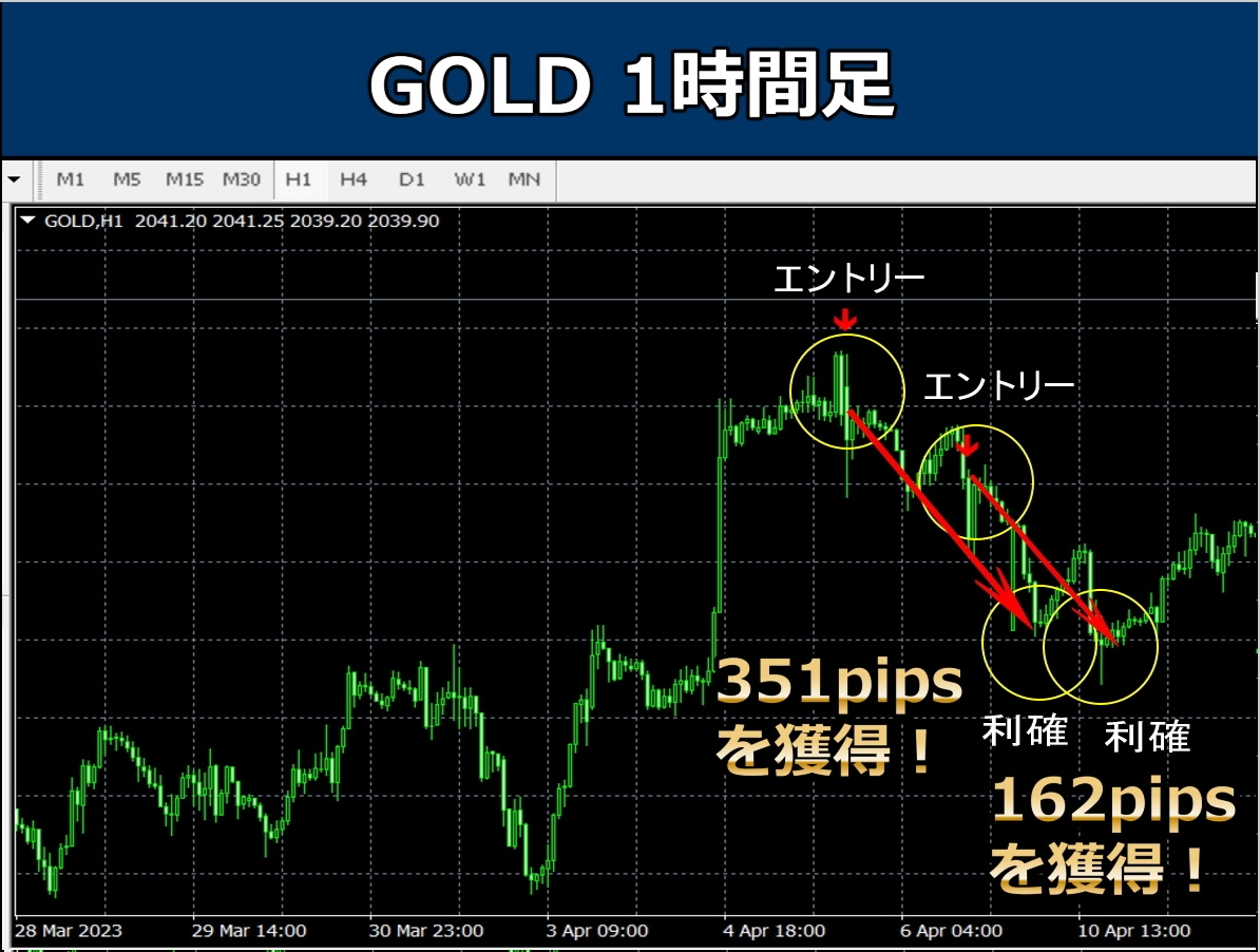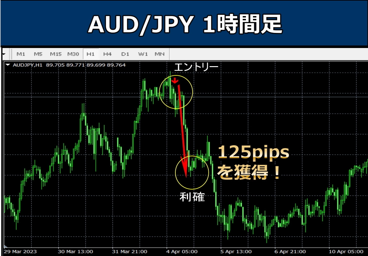 高勝率の売りシグナル。スマホ通知でエントリーするだけで使えます。1回で300pips以上獲得できます!