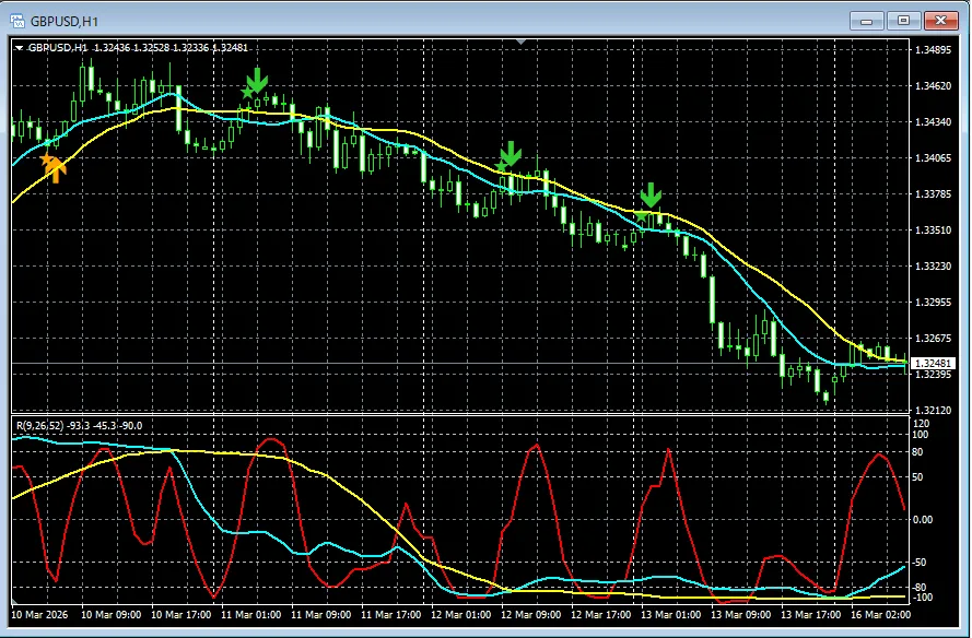 【RCIを極めて移動平均線フィルターで勝つ!!】ポンドドル 1時間足 mBDSRのサイン