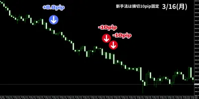 後半は明確な下降トレンドでしたが、ジワジワ落ちており綺麗に落ちずに結果としては損切まで戻ってしまい微損で終了です。