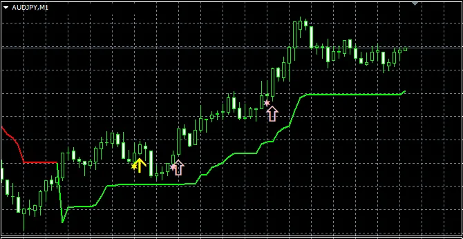 上のチャートでは、【STRCI】のサインがタイミングよく点灯しています。