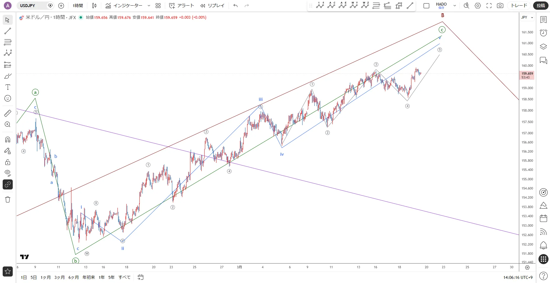 【ドル円】サブシナリオに移行 / 3月19日(木)のイベントエリオット波動分析