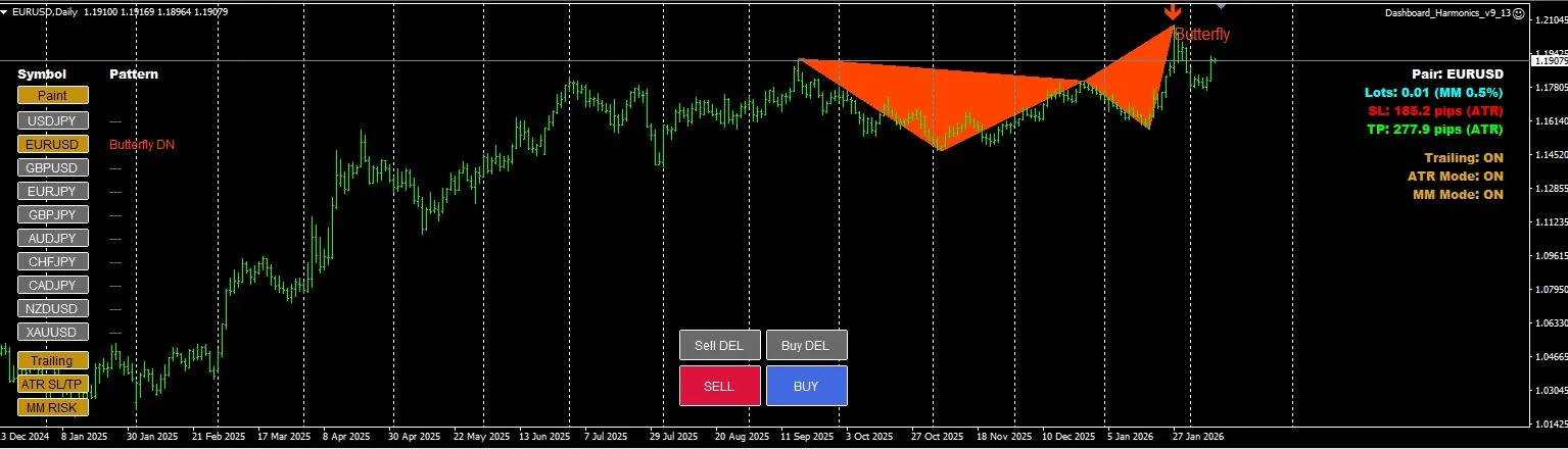 ハーモニックパターンは、**「PRZ(潜在的反転ゾーン)」**での反転を狙う手法です。Dashboard_Harmonics_v9を使えば、以下のようなスマートなトレードが可能になります。