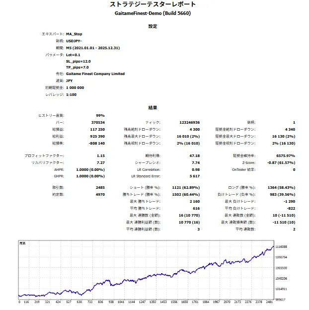 USDJPY M5 2021-2025 (5年間)