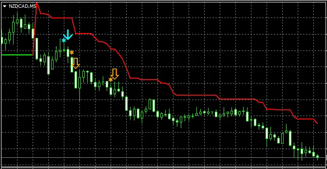 【スーパートレンドRCIで勝つ!!】NZDCAD 5分足 サポートライン下抜け後の戻りからの下げを狙う