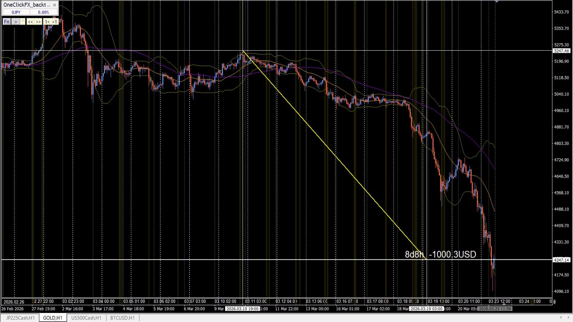 短期的には、NYオープン後の動きが鍵になります。S&Pとゴールドがさらに崩れるのか、それとも一旦落ち着くのか。特にゴールドは4,000ドル割れを試すのか、それとも反発するのか、かなり重要な局面です。正直なところ、安全資産と言われるゴールドですら、ここまで下がるというのは大きな教訓になるところです。