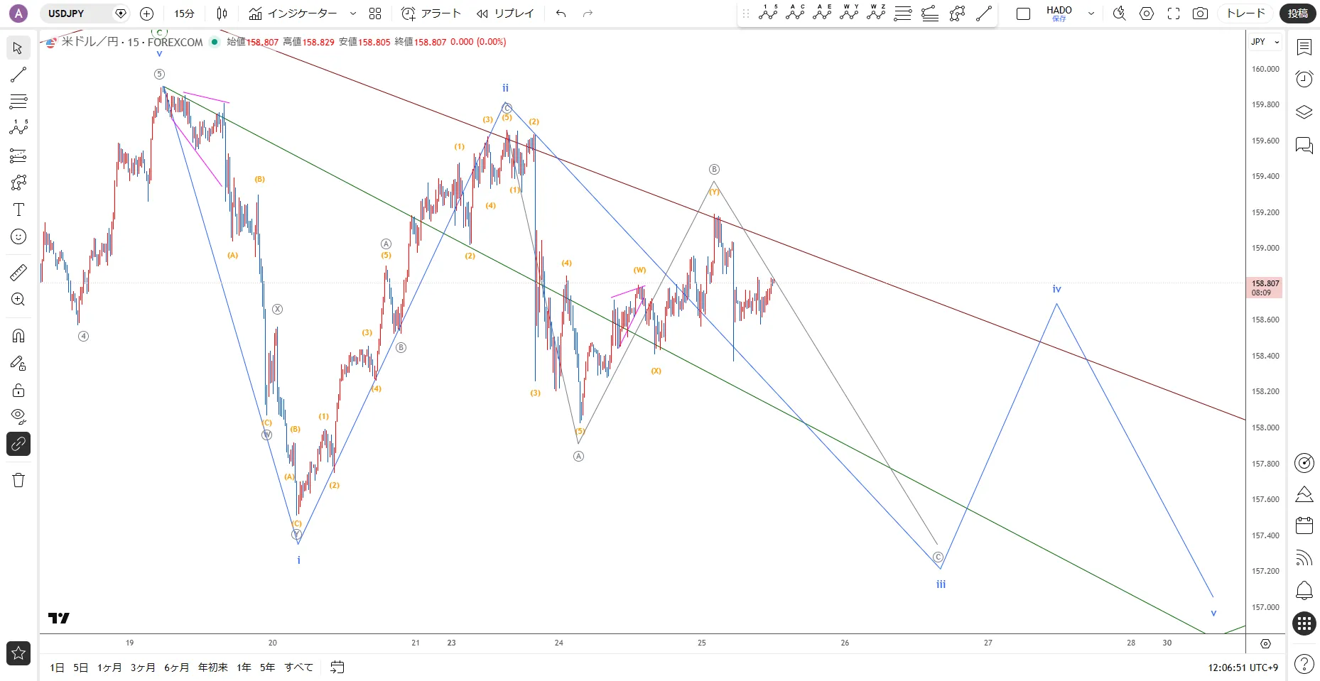 青ダイアゴナル3波-灰ジグザグC波の下降というシナリオ