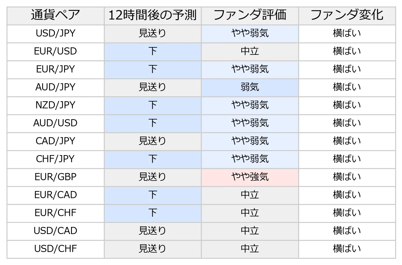・ファンダ変化(直近12時間の変化):上向き/横ばい/下向き