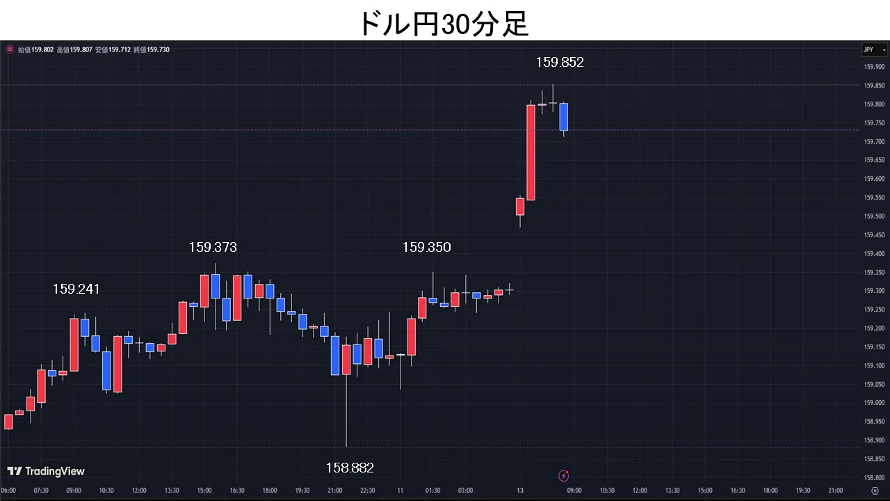 東京時間、中東情勢の不透明感による原油先物価格の上昇や東京仲値でのドル買い観測などで、ドル円は159.24円まで上昇。欧州時間、ドル円は159円台前半で小動き。NY時間、3月米CPIが予想下振れとなると、ドル円は一時158.88円まで下落。しかし、米イランの和平協議を週末に控える中、「有事のドル買い」が先行し、ドル円は159.35円まで上昇。