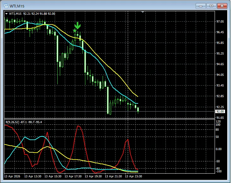 原油 WTI 15分足【RCIを極めて勝つ!!】mBDSRのサイン