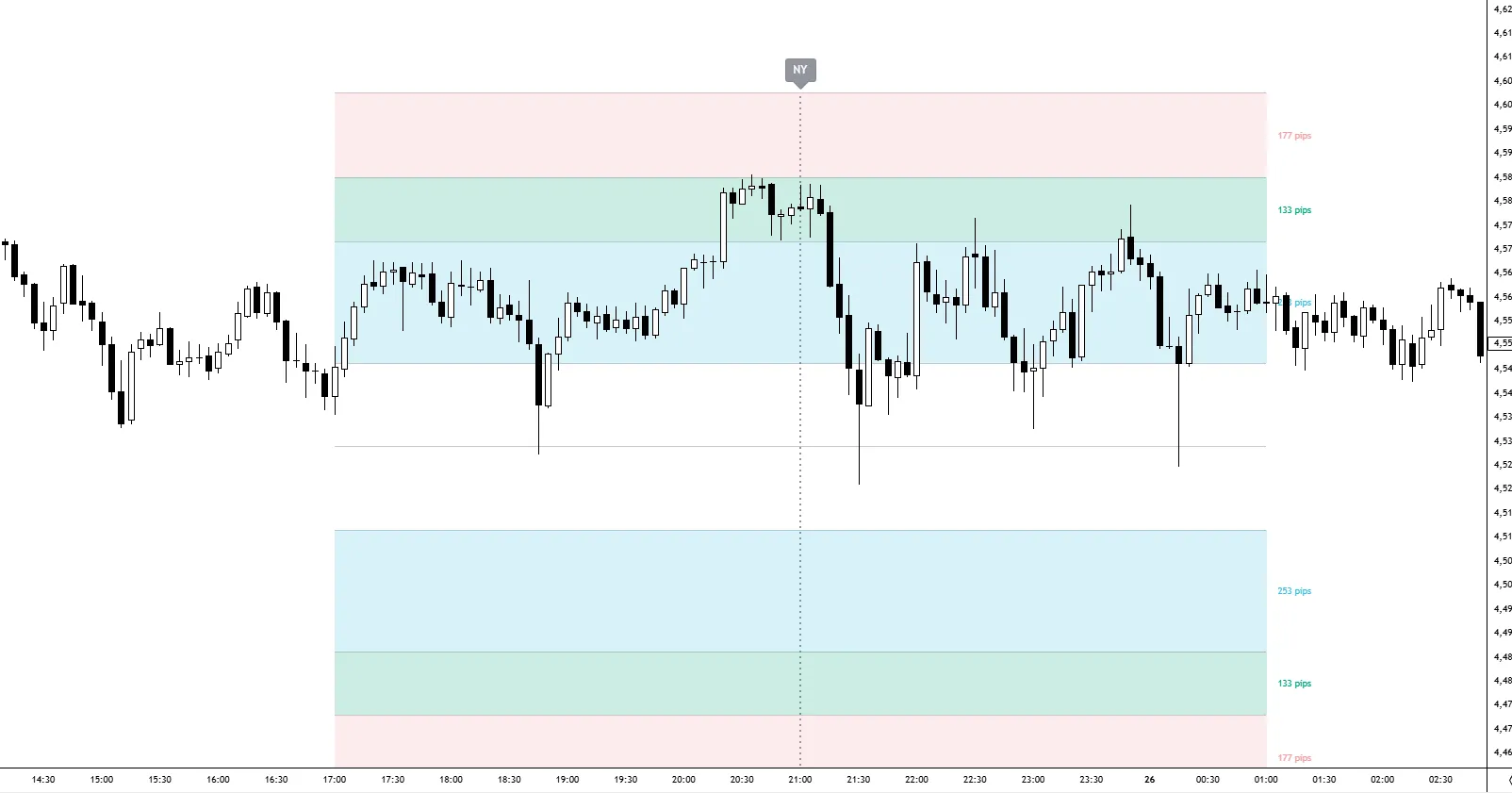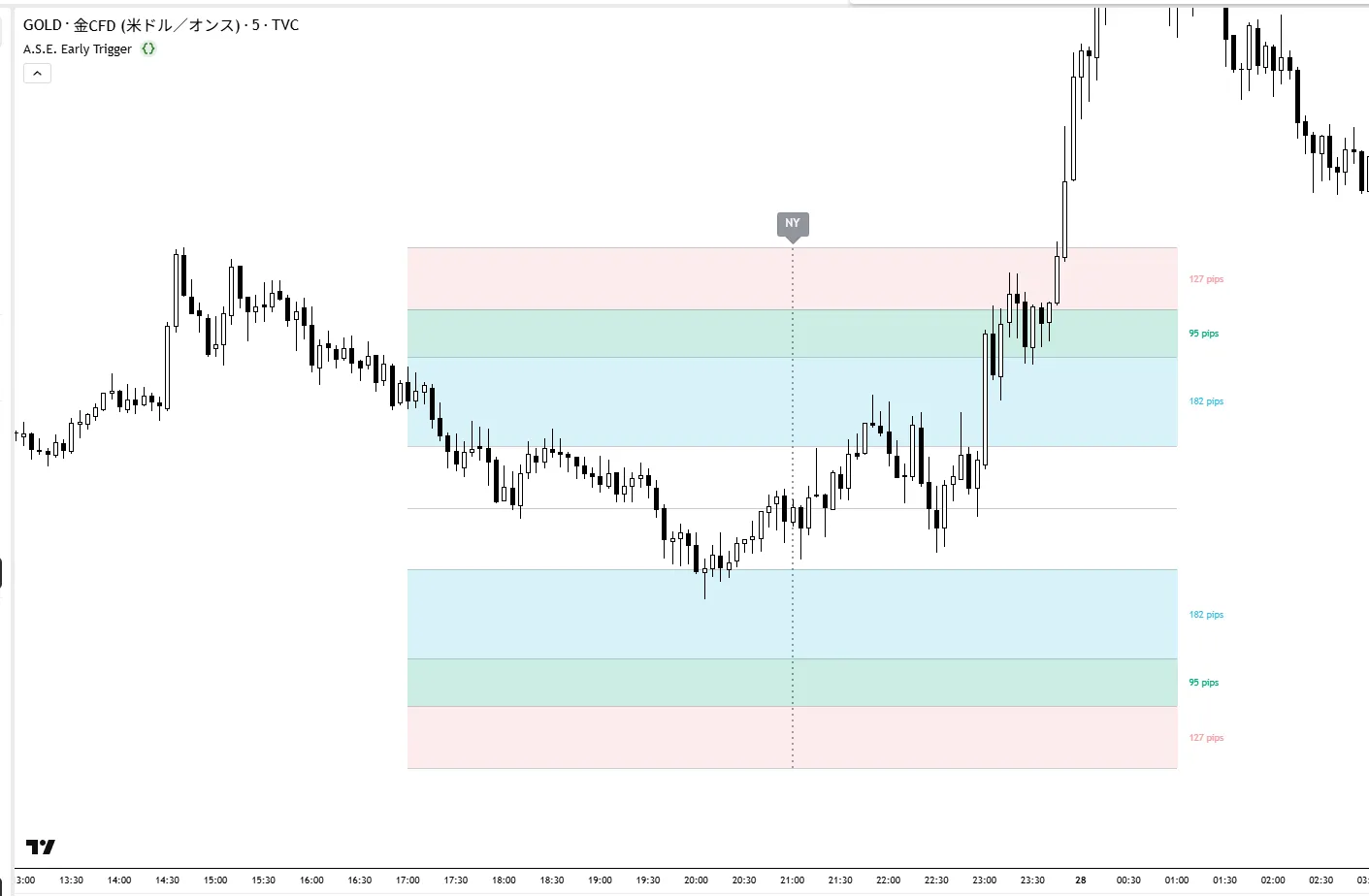 アーリーロンドンの価格変動から当日動くであろう部分をライン分け。