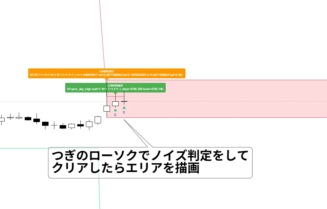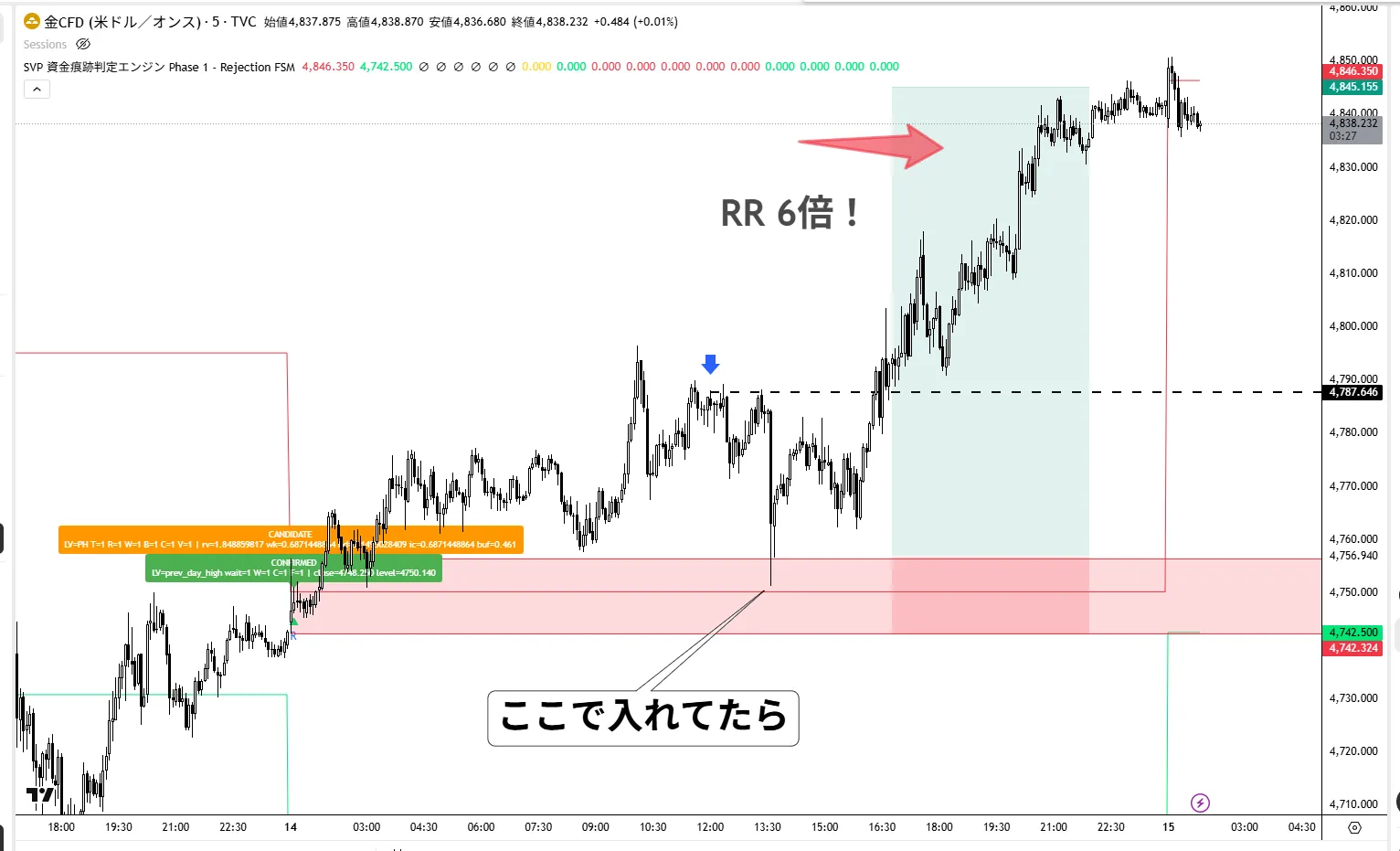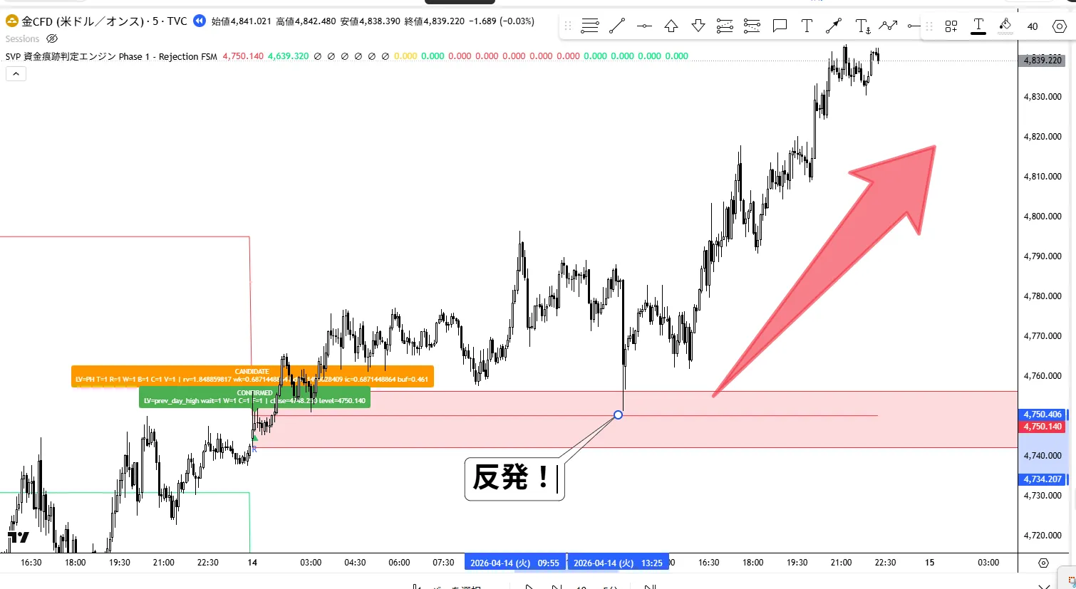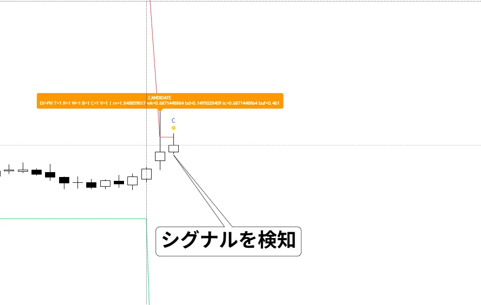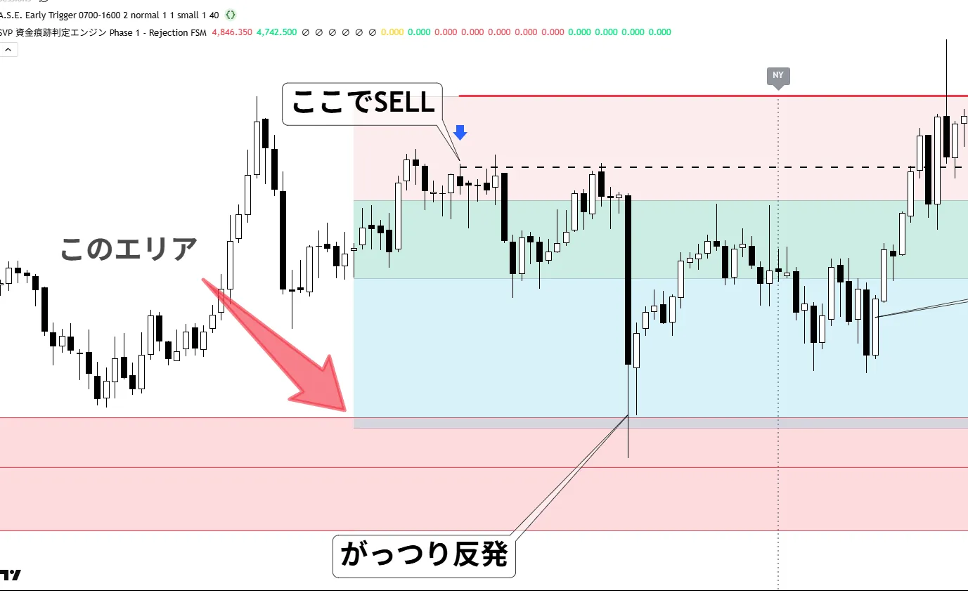 インジケーターが描いたエリアにしっかり反発してくれてました。