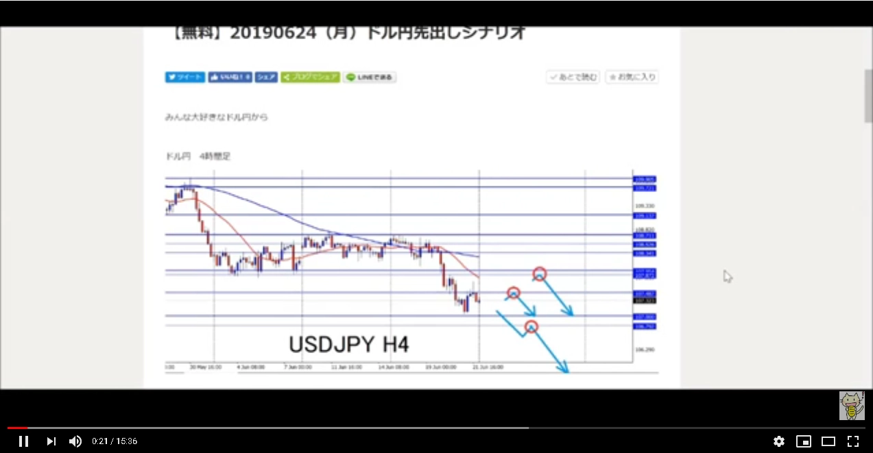 【動画解説】20190624(月)ドル円ポンドドルユーロドル振り返り解説
