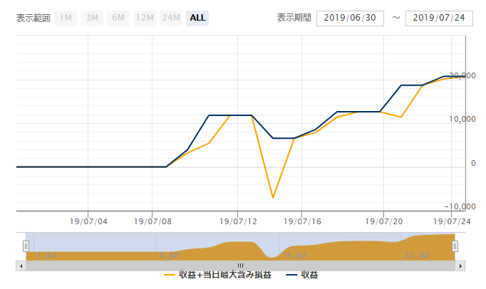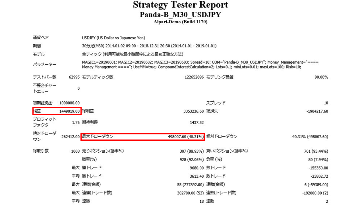 基本、最大ストップロスが深くテイクプロフィットが浅いので保有時間が長ければ損切り、短ければ利確の取引になると考えられます。