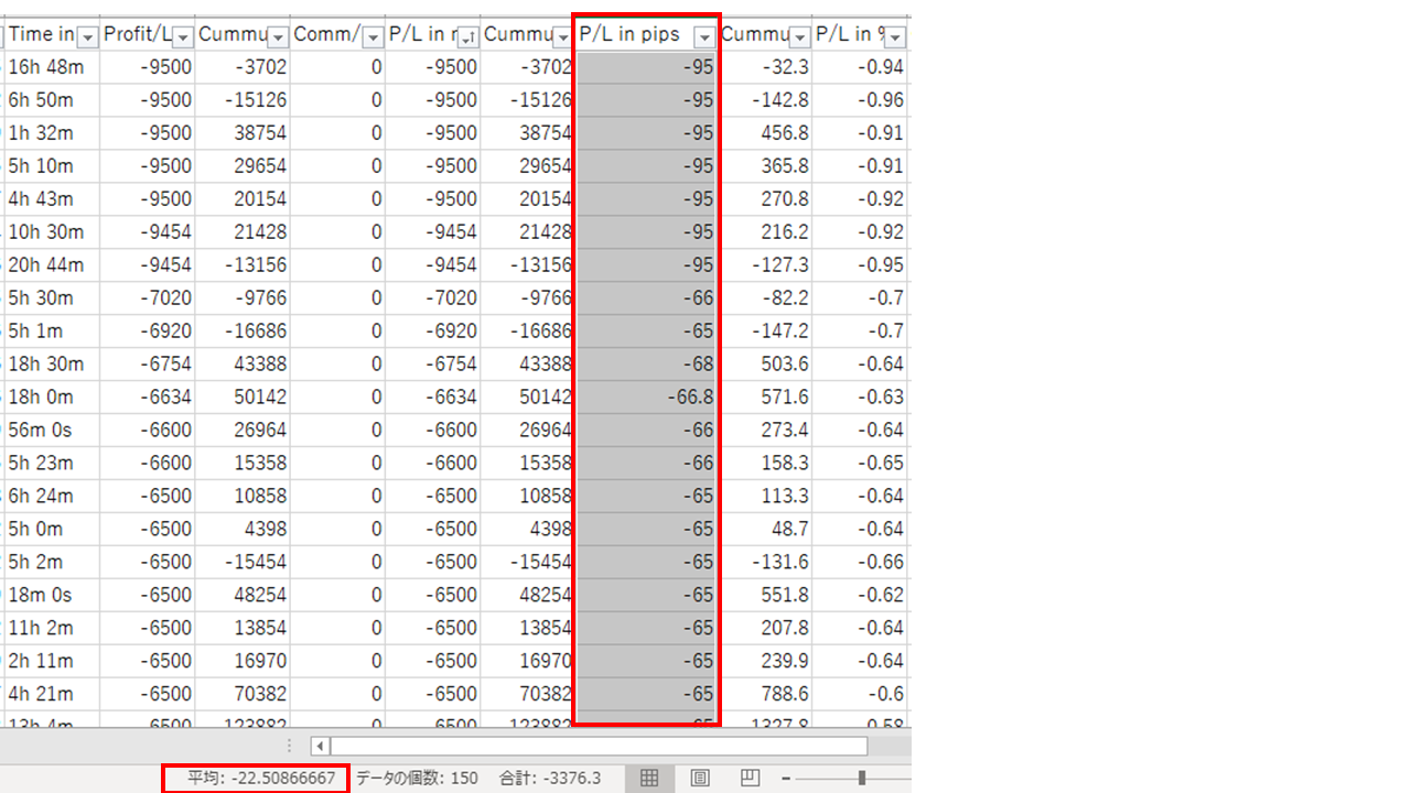 実際には最大でも95pointが7回(ストップロス全体の約5%)、平均22.5pointでストップロスになっていることが確認できます。