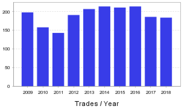 過去10年間の相場で3年損失となりましたが、直近3年が比較的高い収益を上げている成績なので2019年以降の相場にも期待が持てます。