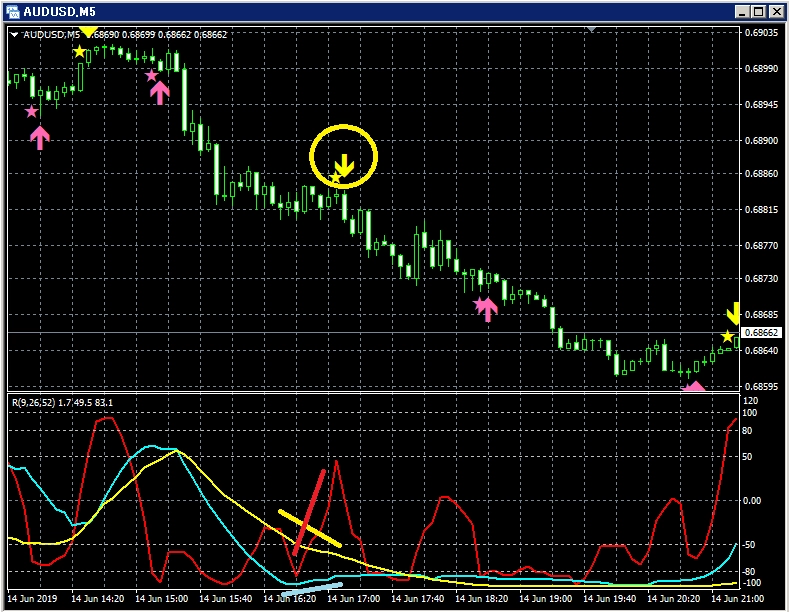 RCI3本ライン+mBDSRの押し目買いサインの例