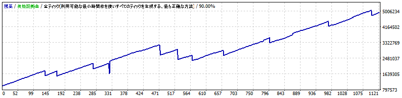 フォワードは2か月間ですが勝率は83.33%と高く、PFは13.44と期待が持てそうな数値が出ています。最大ドローダウンは0.1lotで4.75%と低リスクで運用ができそうです。