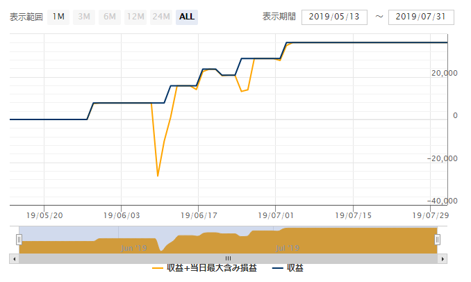 直近約3か月間に獲得したpipsです。合計で33.3pips獲得しています。