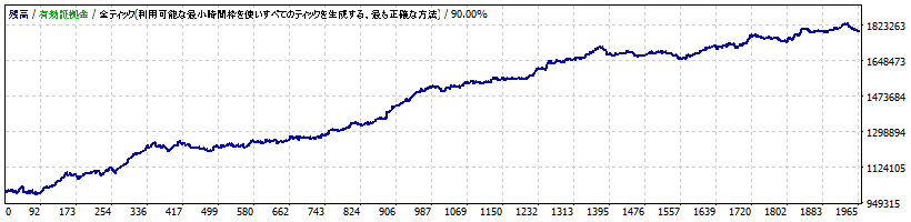 フォワード期間は2018年5月から2019年8月の1年と3か月間で、フォワードの収益グラフを見ると谷になっているところはありますが、ほぼ右肩上がりとなっています。