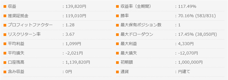 毎週末にパラメーターを翌週のイベント等を考慮しながら設定し、週明けを迎えて稼働すると更に素晴らしい成績になるのではないかと思いました。