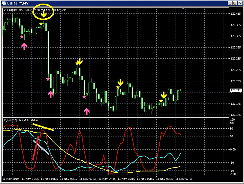 今週の「RCI3本ライン+mBDSR」のサインの例(11月18日~11月22日)