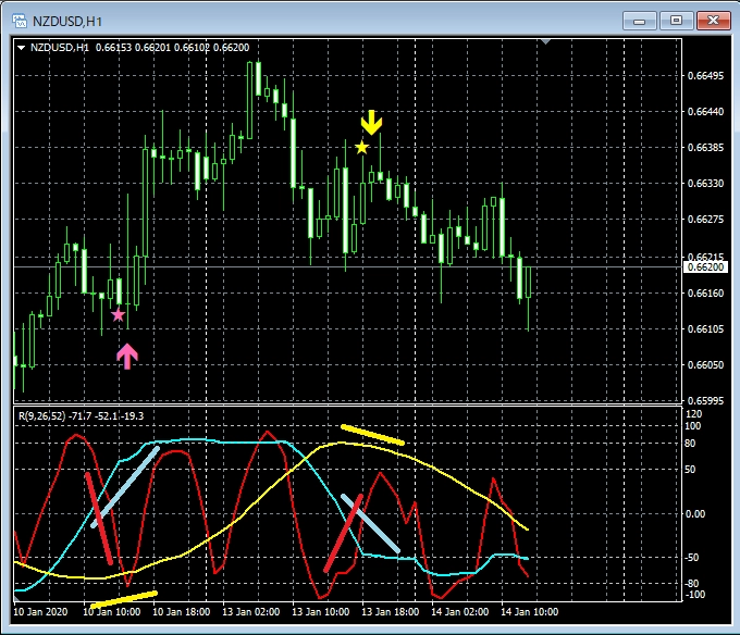 下図は、今週(1月7日~1月11日)見られた「mBDSRのRCI2本フィルターバージョン」のサインの例です。