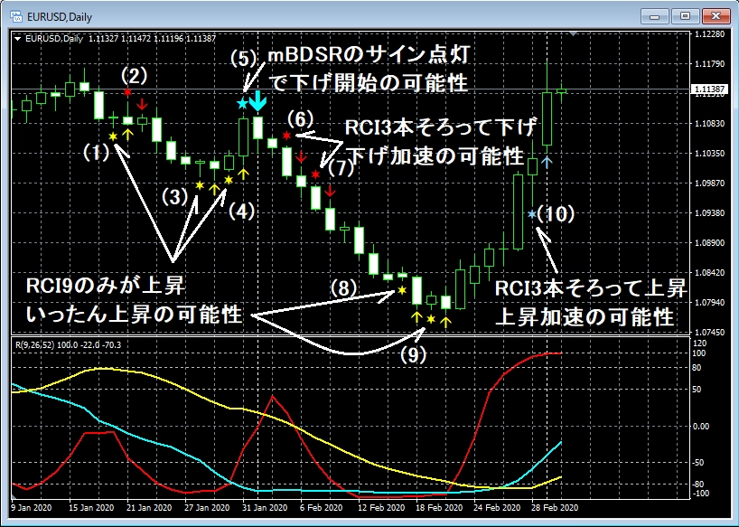 下図は、今週(2月24日~2月28日)見られた「mBDSRのRCI2本フィルターバージョン」のサインの例です。