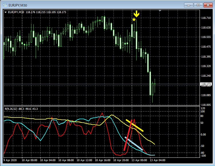 『RCI3本ライン+mBDSR』売りの根拠について考える~1時間足レベル戻り売りの例(2)