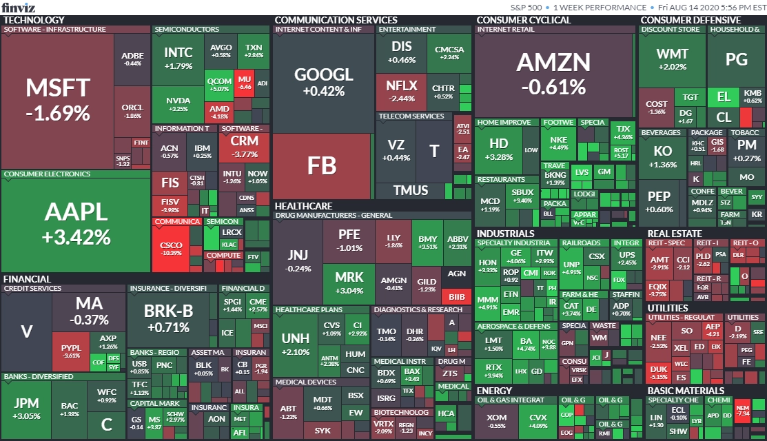 公共セクターを除き、どのセクターも好調だった。MSFT、FBなど大型株も上昇したが、CRMは何と週間で30%以上上昇。