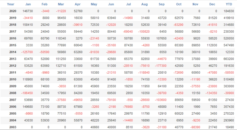 2020年については、ポジション保有中にバックテストが終了しているので、年間トータルで負けが確定の様になっていますが、GogoJungleのフォワードテストでは、2020年6月に含み益に転じ利益確定決済となっています。