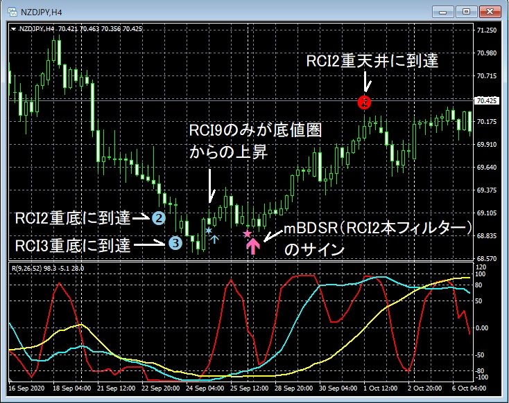 10月5日~10月9日に見られたmBDSR(RCI2本フィルターバージョン)のサインの例を3つの記事に分けて紹介します。これはその3つめの記事です。