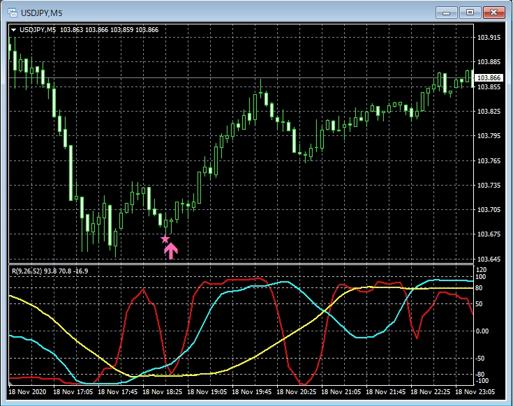 RCI3本ラインとの組み合わせで威力を発揮するインジケーター 11月16日~11月20日に見られたサインの例 (2)