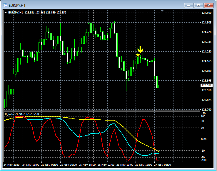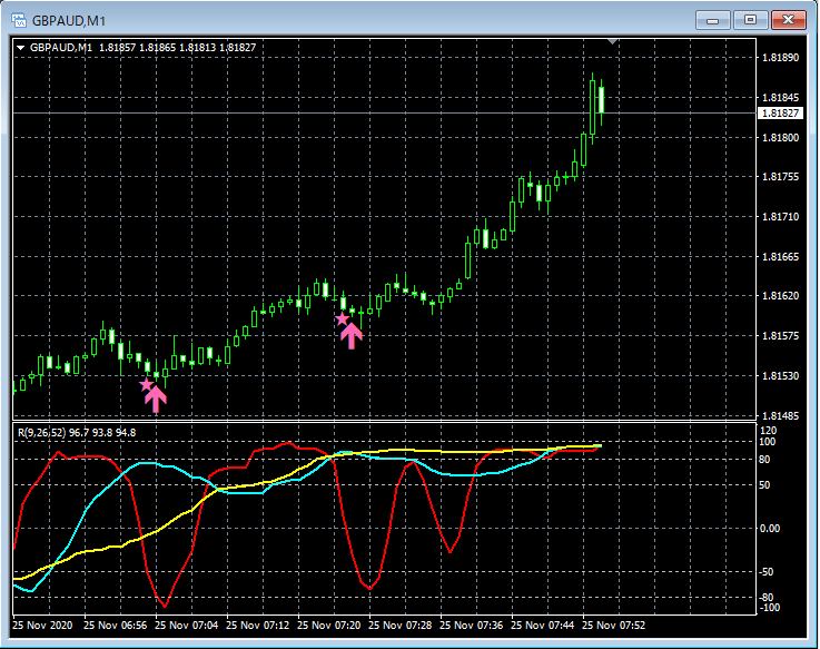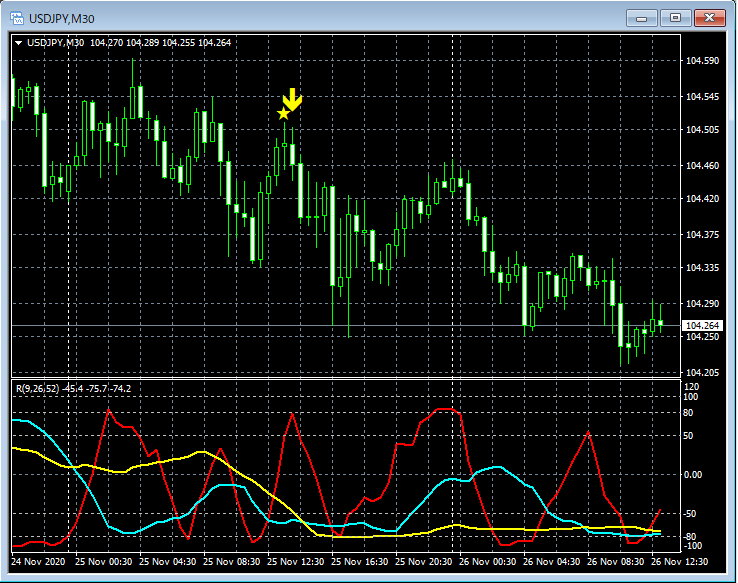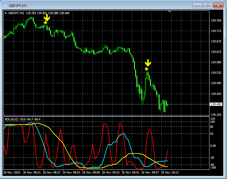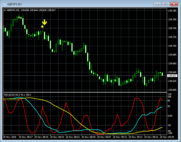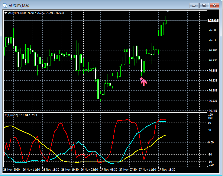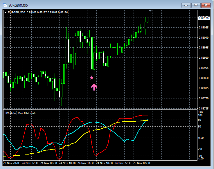 RCI3本ラインとの組み合わせで威力を発揮するインジケーター 11月23日~11月27日に見られたサインの例 (2)