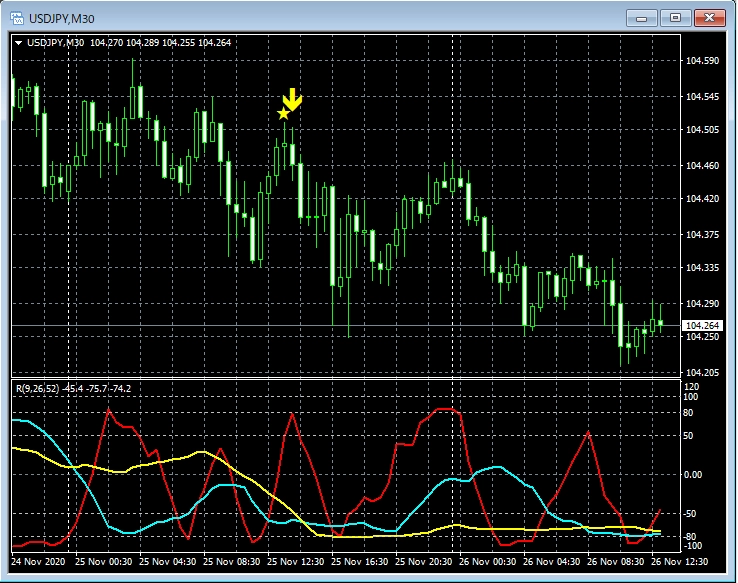 RCI3本ラインとの組み合わせで威力を発揮するインジケーター 11月30日~12月4日に見られたサインの例