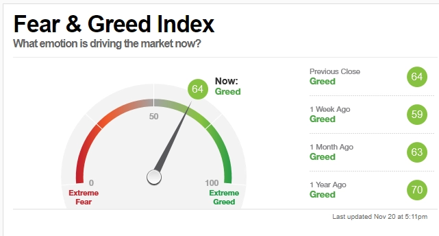 強欲指数は90台まで上昇し、一方恐怖指数は20台まで低下しました。
