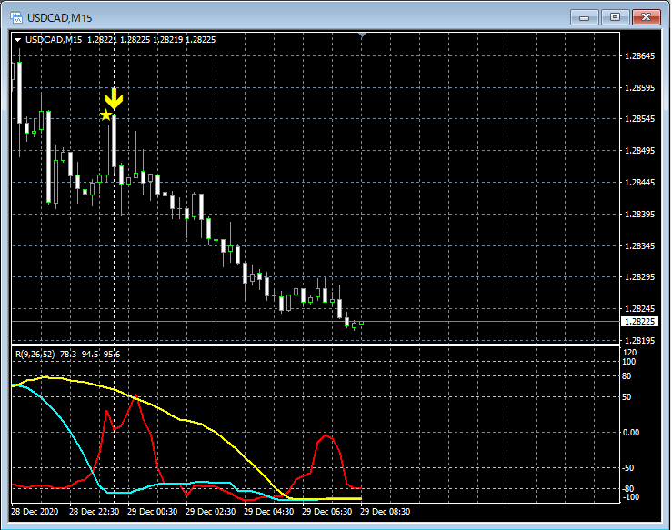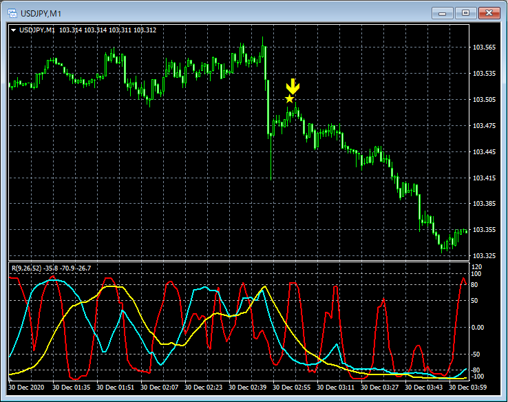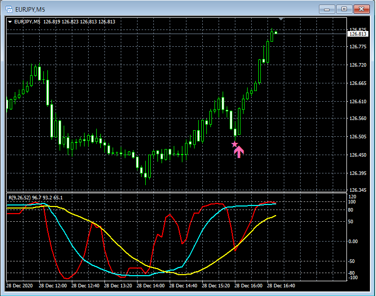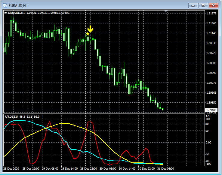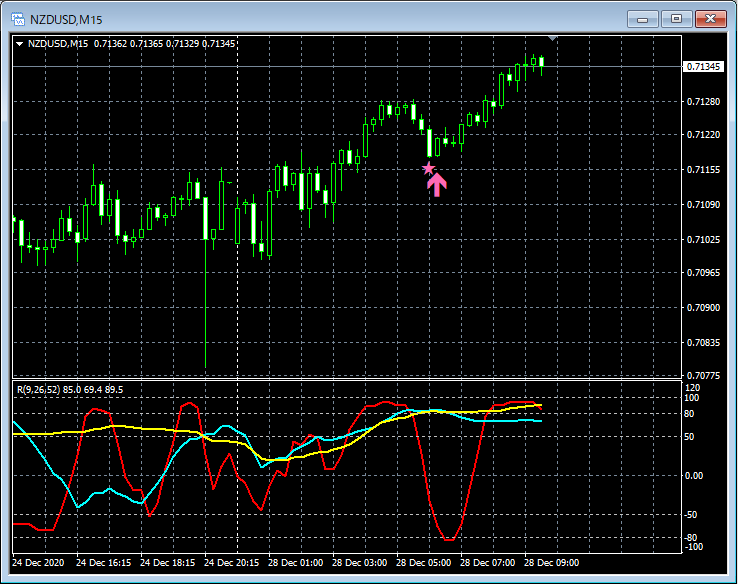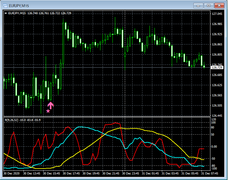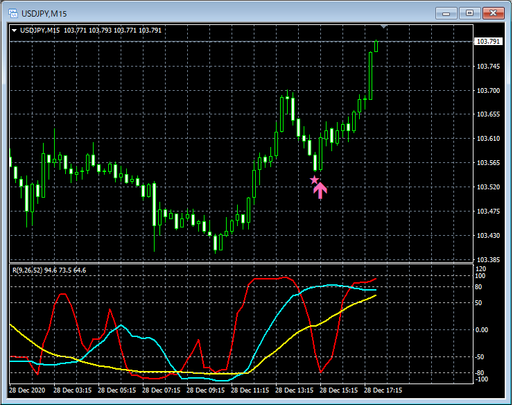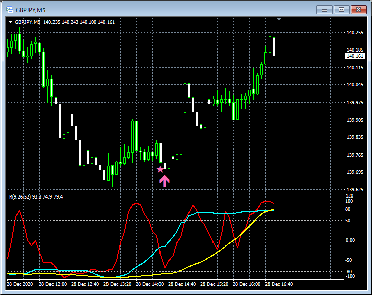 RCI3本ラインとの組み合わせで威力を発揮するインジケーター 12月28日~1月1日に見られたサインの例