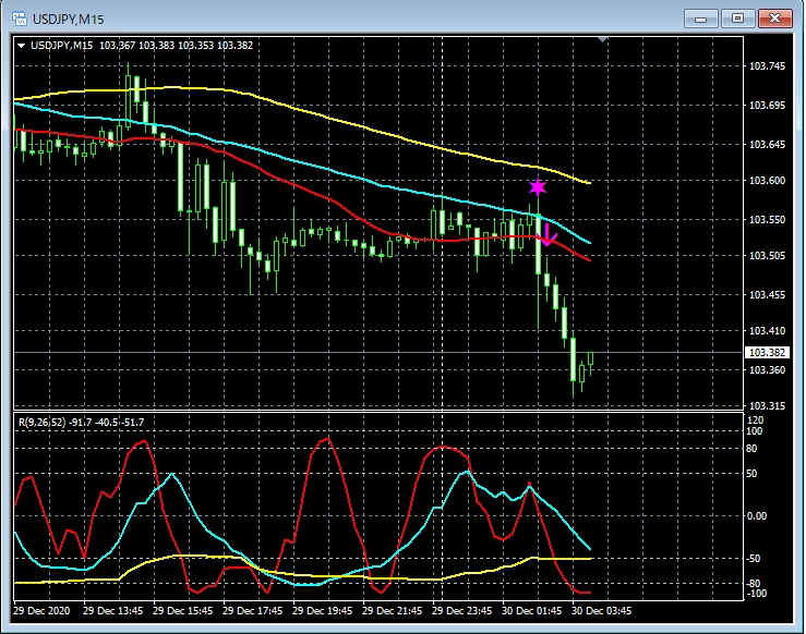 RCI3本ラインとの組み合わせで威力を発揮するインジケーター 12月28日~1月1日に見られたサインの例