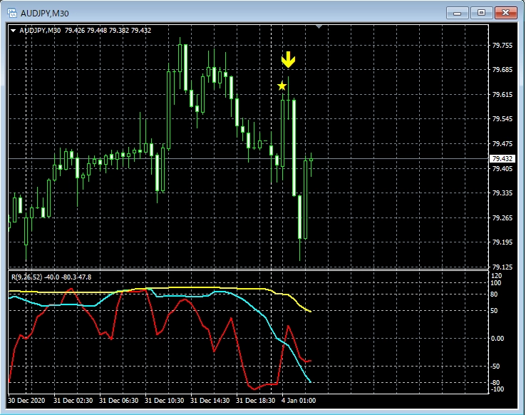 RCI3本ラインとの組み合わせで威力を発揮するインジケーター 1月11日~1月15日に見られたサインの例
