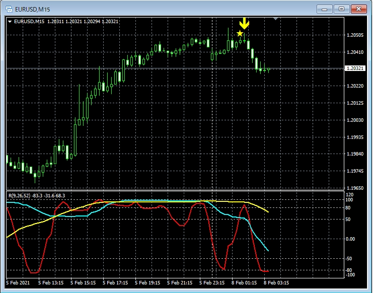 RCI3本ラインとの組み合わせで威力を発揮するインジケーター 2月15日~2月19日に見られたサインの例