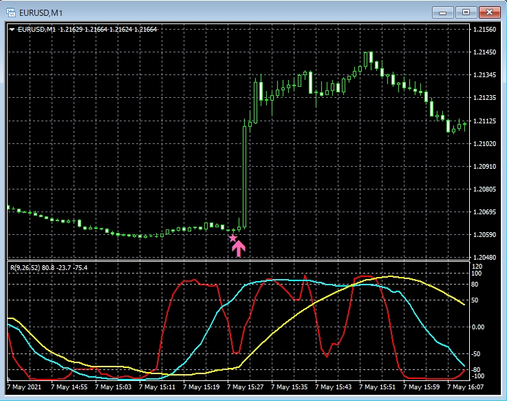 RCI, MA, GMMAなどとの組み合わせで威力を発揮するインジケーター 5月10日~5月14日に見られたサインの例