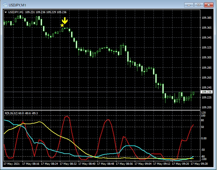RCI, MA, GMMAなどとの組み合わせで威力を発揮するインジケーター 5月17日~5月21日に見られたサインの例